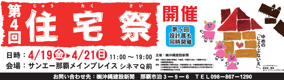 糸満市土地開発公社では、下記のとおり「第4回住宅祭&設計展」に出展します。