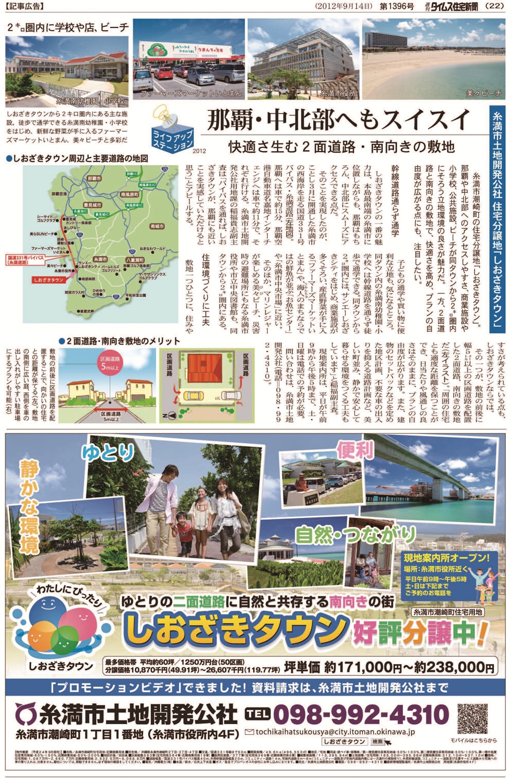 平成24年9月14日付け発行「週刊タイムス住宅新聞」にしおざきタウンの記事が紹介されました。