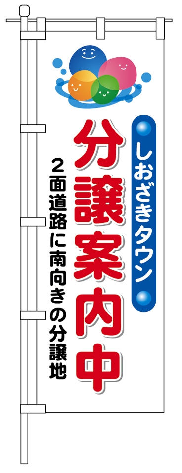「潮崎町分譲用地」の分譲協力をいただける業者様のご希望により、左記の「分譲案内のぼり」を提供しております。